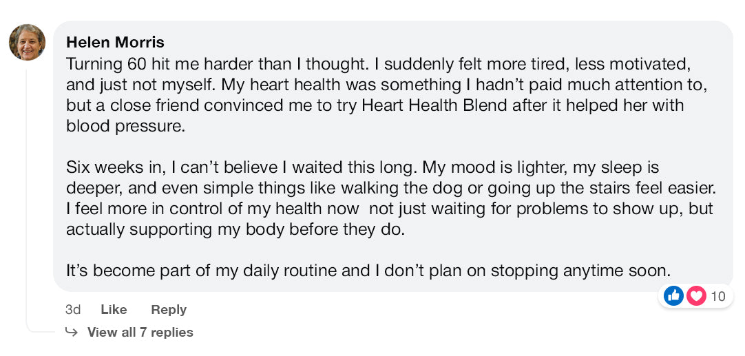 “Heart Health Blend isn't just a product. It's the feeling of finally being understood. We were all so exhausted - now we have energy and courage again.”