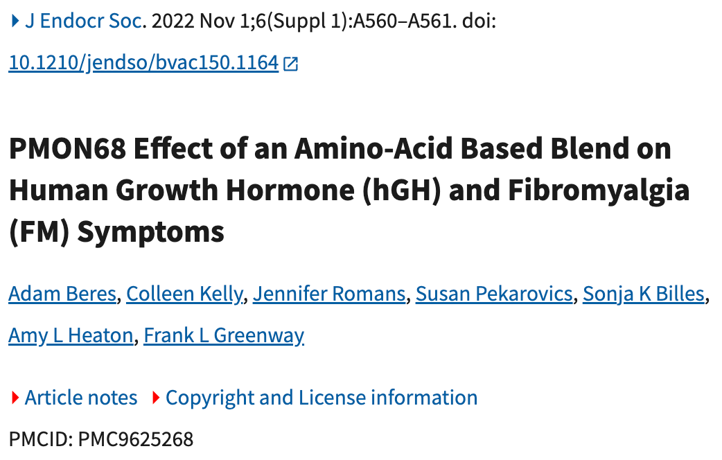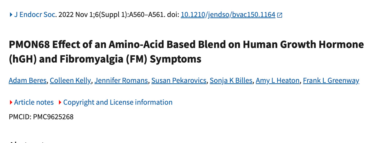 PMON68 Effect of an amino acid based blend on human growth hormone (hGH) and fibromyalgia (FM) symptoms